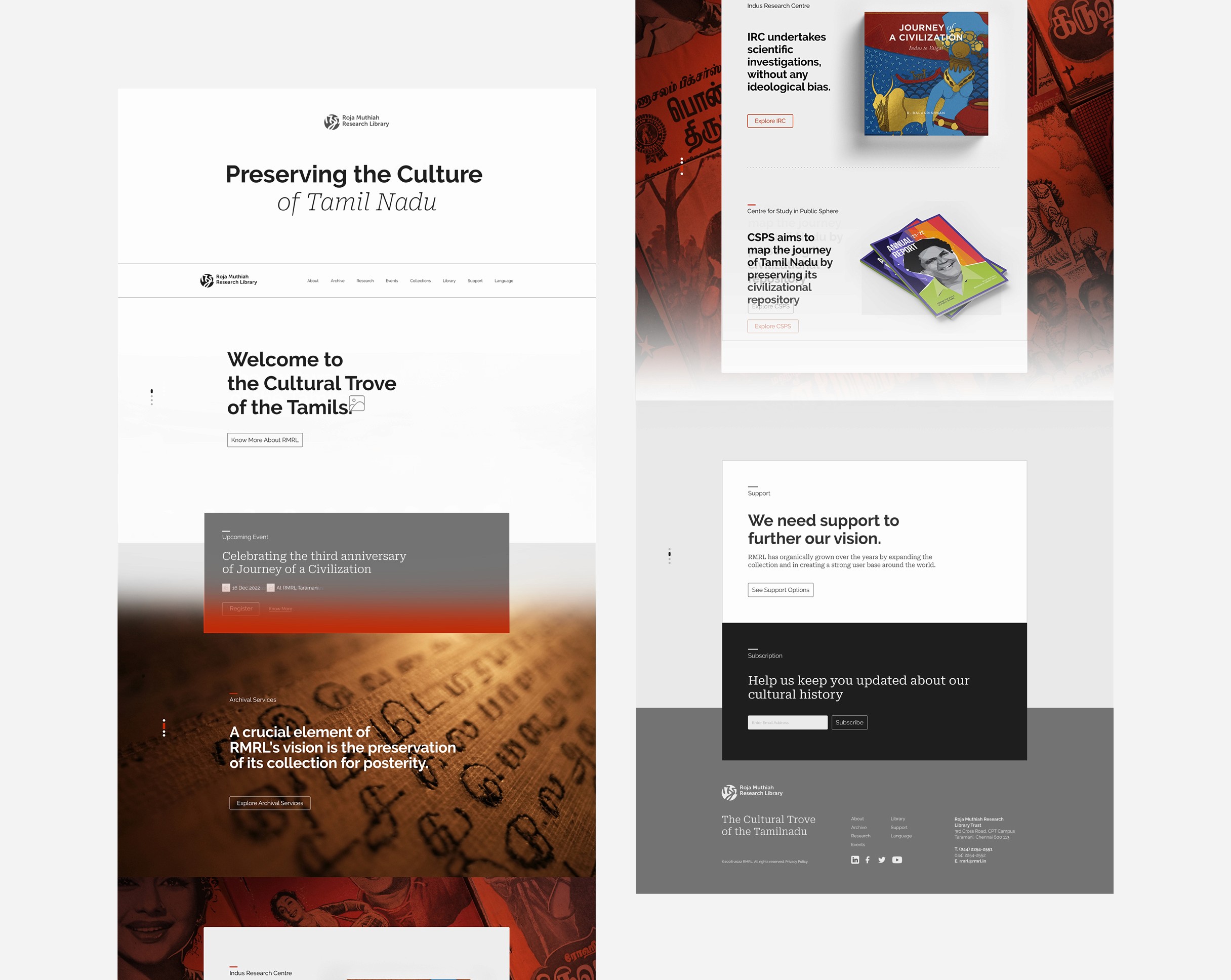 The redesigned platform elevated the experience for all users. We brought easy navigation for new users to archival material, enhanced for the new age, and brought about all the rare tamil archive materials to the forefront with engaging visuals. The solution provided a clear pathway for enthusiasts to support RMRL's mission of preservation and global sharing of Tamil history and knowledge.
